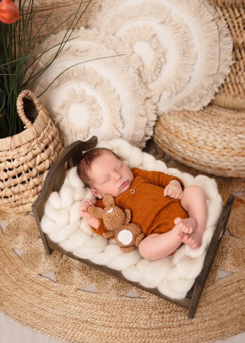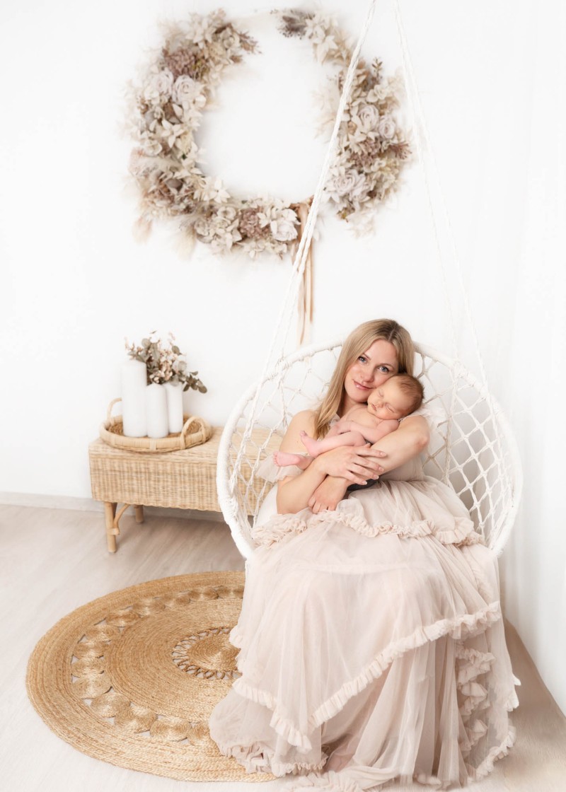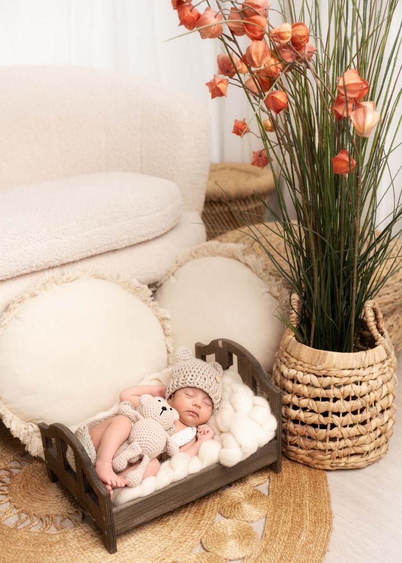 Boho newborn studio photography is a unique and cuddlesome session which let us catch the beauty and delicacy of a newborn simultaneously referring to the loose and natural boho style. During the boho studio session we can use a variety of decorations. It’s essential that the whole arrangement is harmonious and subtle underlying both naturalness and delicacy of a newborn. Baby boho photo shoot is not only an opportunity to memorise the very first days of a baby’s life but also to create artistic and stunning art expressing love, delicacy and naturalness. Photos from such a session are full of magic, warmth and coziness being unforgettable memento for a lifetime.
