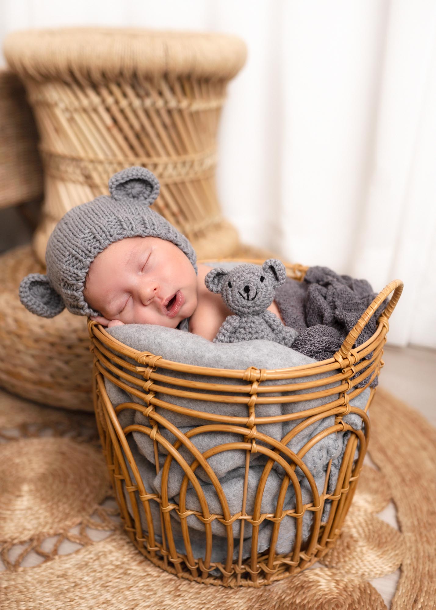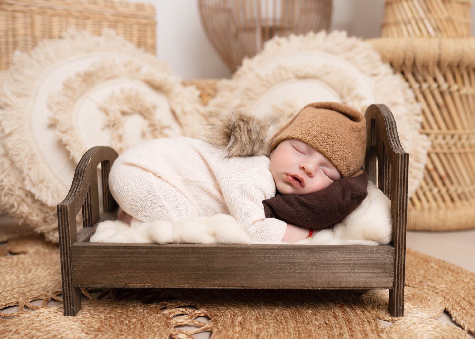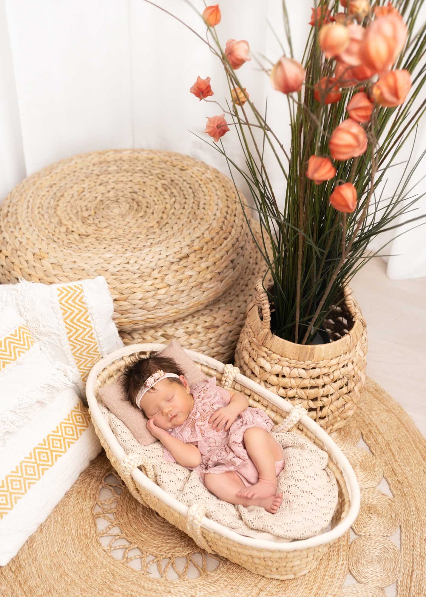 Boho newborn studio photography is a unique and cuddlesome session which let us catch the beauty and delicacy of a newborn simultaneously referring to the loose and natural boho style. During the boho studio session we can use a variety of decorations. It’s essential that the whole arrangement is harmonious and subtle underlying both naturalness and delicacy of a newborn. Baby boho photo shoot is not only an opportunity to memorise the very first days of a baby’s life but also to create artistic and stunning art expressing love, delicacy and naturalness. Photos from such a session are full of magic, warmth and coziness being unforgettable memento for a lifetime.