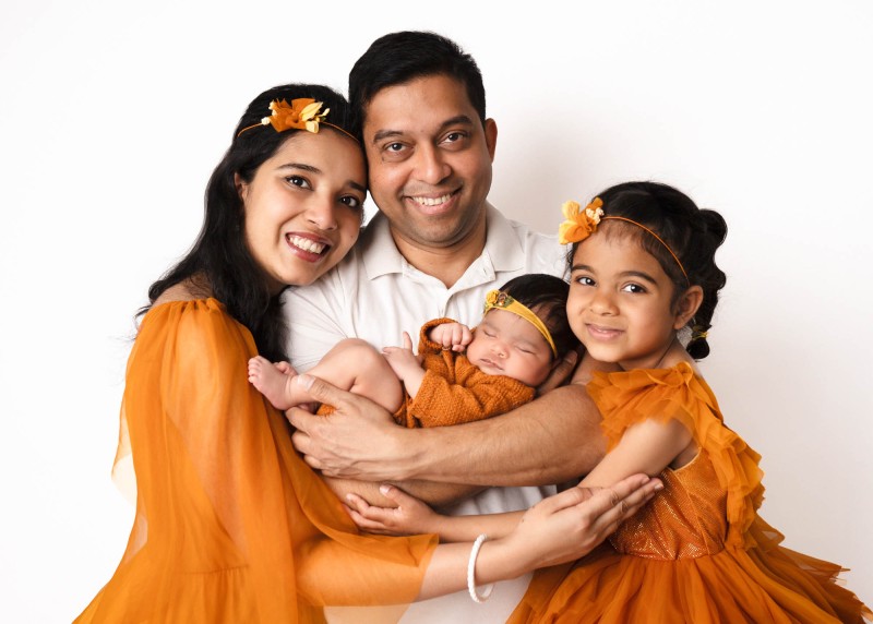 Yes, parent and sibling portraits can be added to any standard newborn portrait session.